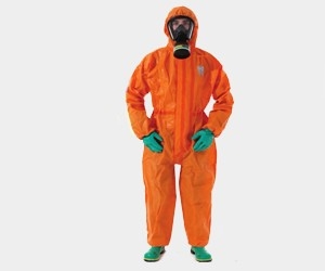 亮橙色,連體帶帽,松緊帽檐、腰部、袖口和褲管。外置型防化靴和防毒手套(另配)。獨(dú)特的超聲波焊接加黏膠條技術(shù)使接縫更加牢固密封。獨(dú)特的高科技面料可以高性能地防護(hù)200多種化學(xué)品和生物有害物。雙層拉鏈以及雙層門襟確保了衣服的密封性。雙層袖管確保了手套與衣服連接處的液密性。衣服纖維不脫落以保護(hù)犯罪現(xiàn)場(chǎng)。該款服裝是當(dāng)前世界上可重復(fù)使用的比較輕盈的防化防毒服。