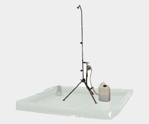便攜式帳篷淋浴器,用于一人洗消,有三個(gè)出水口。每個(gè)出水口均能流出自動(dòng)混合好的洗消劑,清潔劑,等等。帳篷需配有污水收集和排水泵。