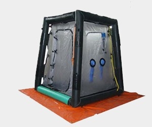 在另外的兩邊的一邊有封閉窗,用透明材料制成,可以允許操作員觀察帳篷里的洗消進(jìn)程,另外一邊有兩只輔助手套,如果必要的話可以用